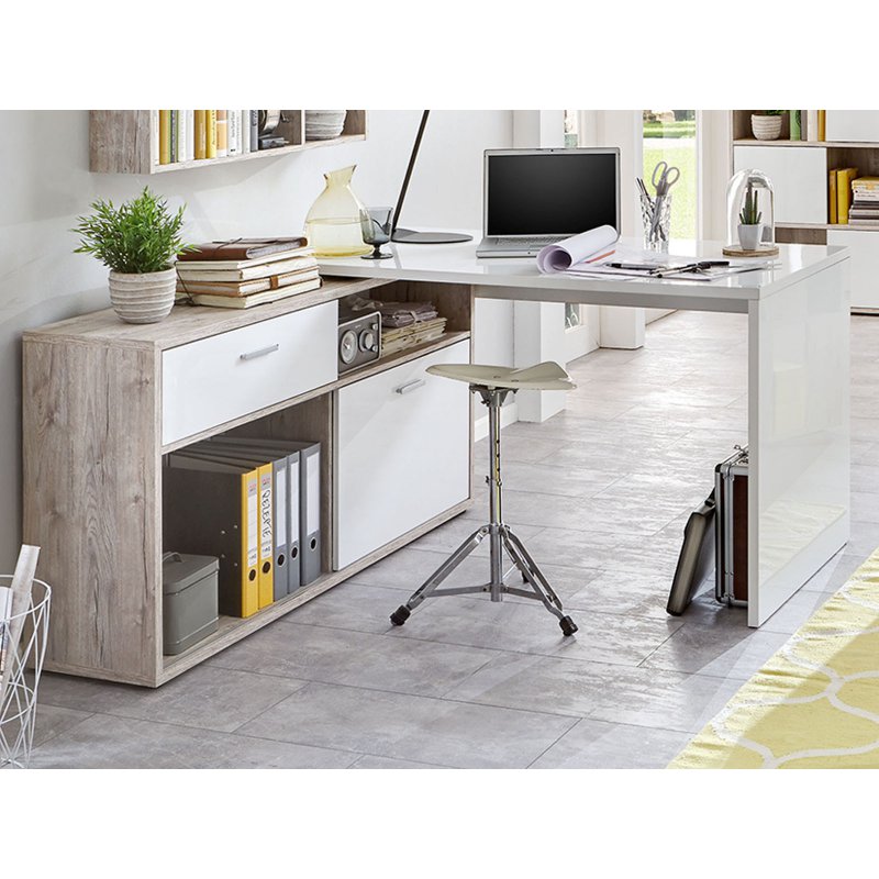 Platzsparender eckschreibtisch in sandeiche nachbildung mit 2 weißen schubladen. Der eckschreibtisch bietet dank seiner zwei türen und vier ablagefächer ausreichend stauraum für. Geniales system das ihnen jede menge stauram für ihre. Stella trading office line eckschreibtisch, winkelkombination inkl.